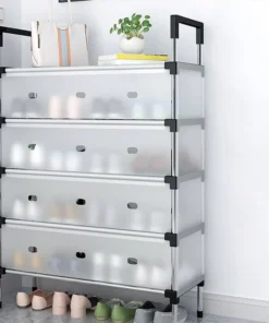 Stackable Shoe Cabinet with Dustproof Cover – Keep your footwear organized, protected from dust, and neatly stored with this space-saving, durable shoe storage solution.